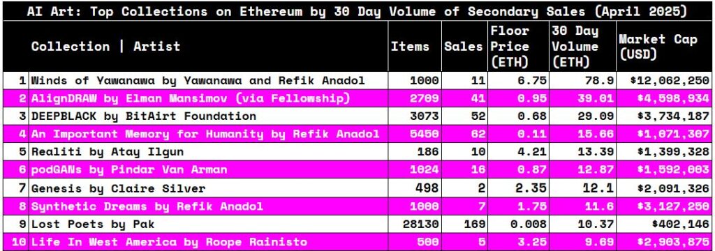 Realiti is an NFT collection by Atay Ilgun, created using stills from Grimes’ video Realiti, combined with images scraped by web crawlers that built datasets based on the track’s lyrics. Today, it holds immense historical value and is considered a pioneering work in early AI and crypto art as the first AI art [as GAN] on Ethereum blockchain with it’s own smart contract.